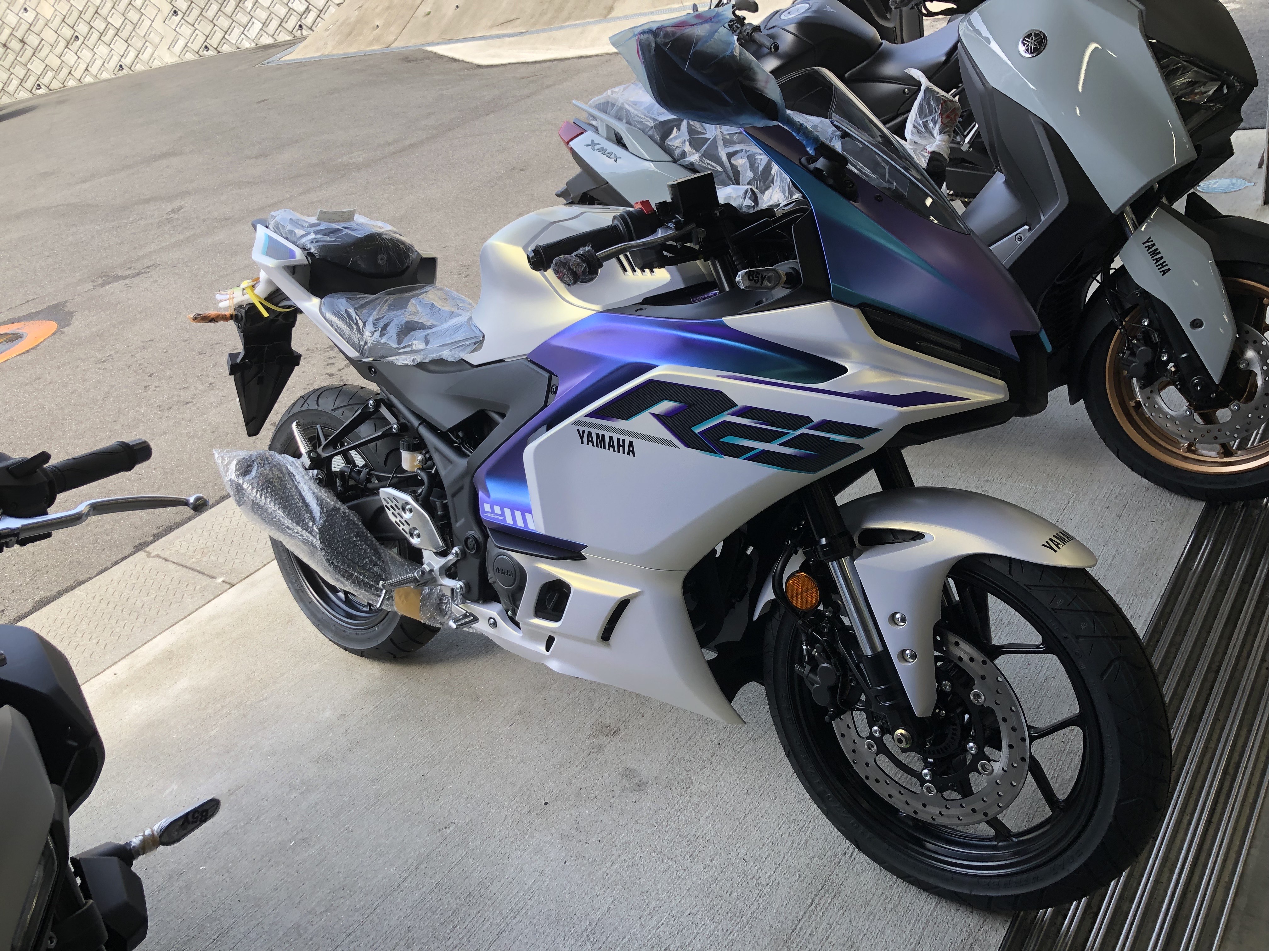 2025年モデルMT-07/03のマットライトグレー、XMAXのグレー、YZF-R25のホワイトが入荷しました。 MT-07とMT-03は売約済みの車両となっておりますので触ることは出来ませんが新色を実際に見ることは可能です。 XMAX、YZF-R25は即納可能車両となっております。こちらは実際に触って確認することが可能です。 どちらもお問い合わせの多い車両となっております。 気になる方はお早めにご来店ください。