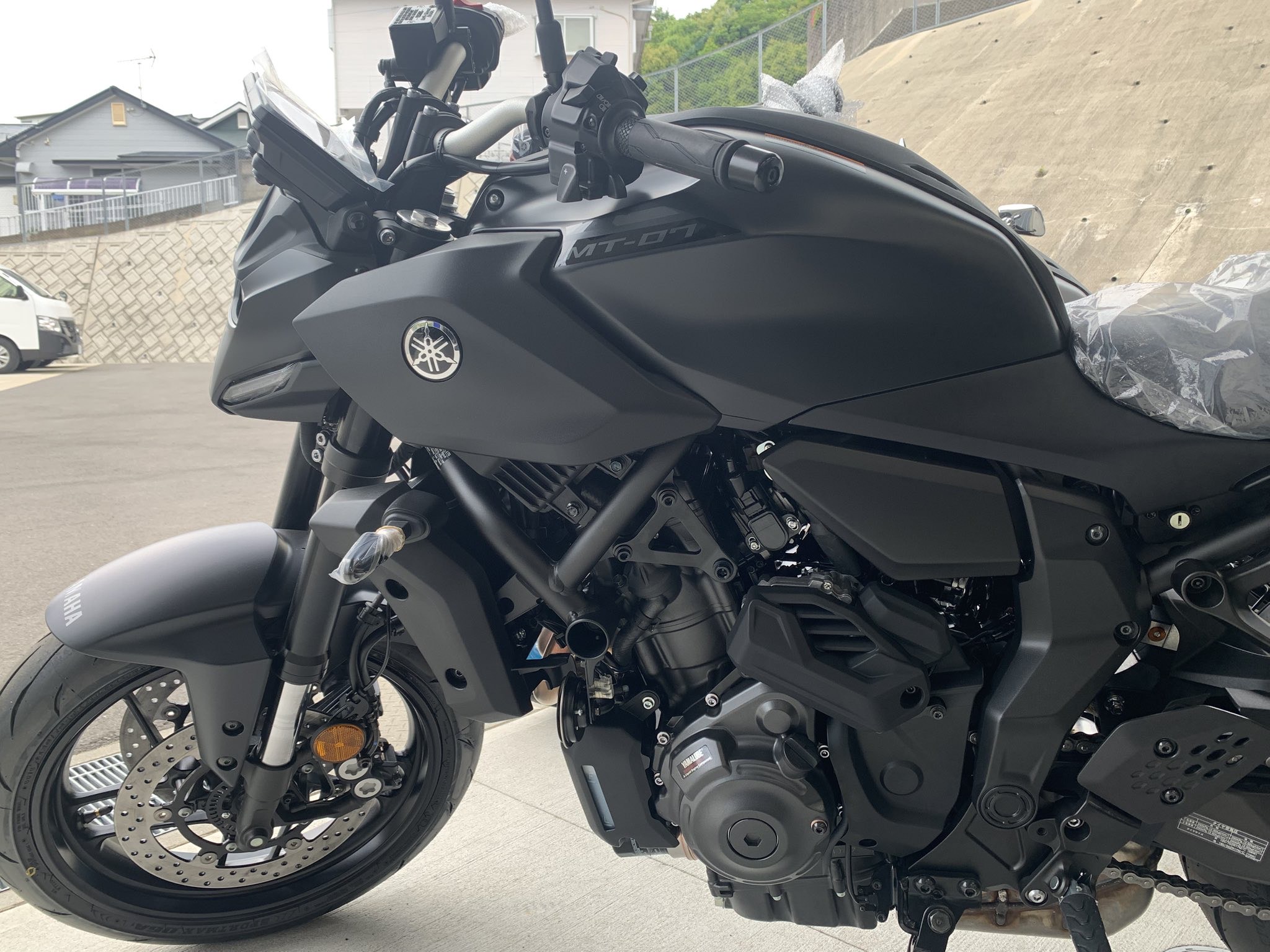 MT-07のマットライトグレーとMT-07 Y-AMTのマットダークグレーの展示車がやっと入荷しました。 こちらは、即納可能車両で今なら触ったり跨ったりもできます。 気になる方はぜひ一度ご来店ください。