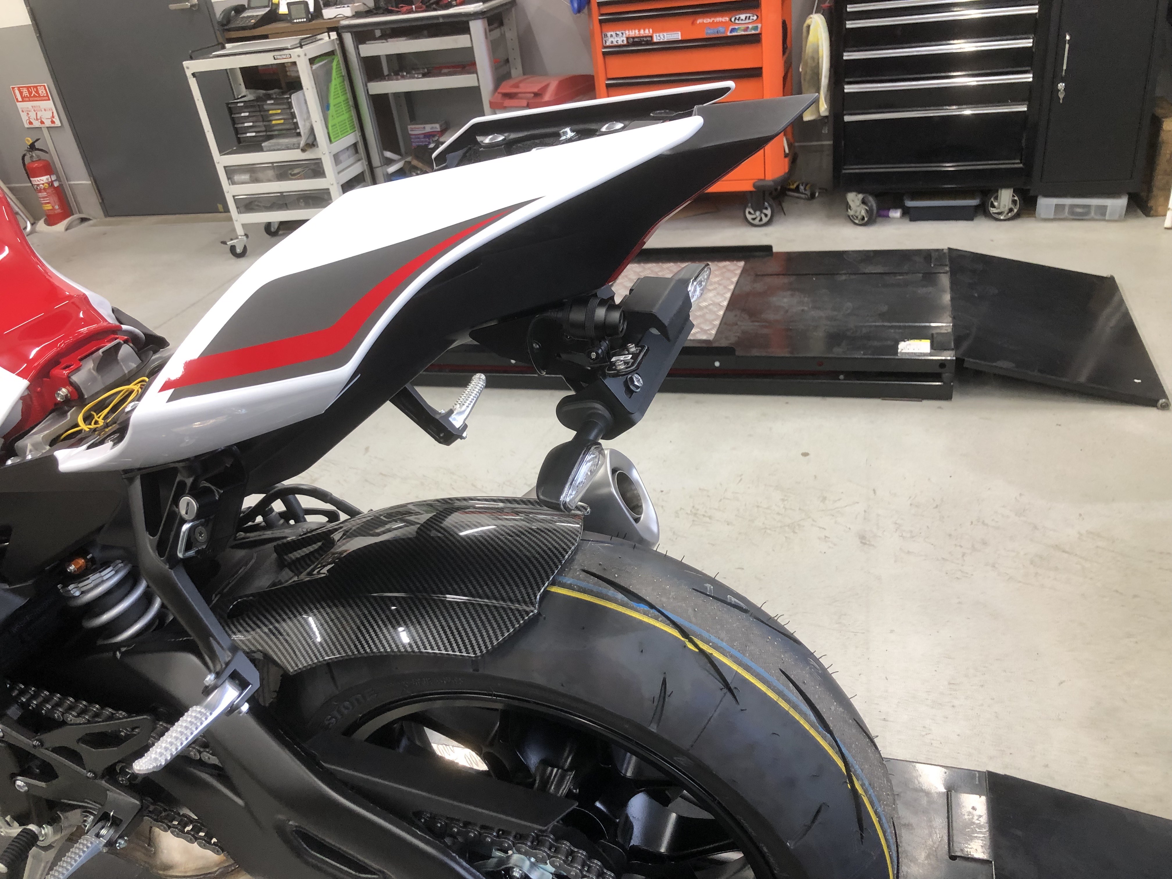 アクティブのフェンダーレスキットとドラレコRカメラをナンバーステーで設置してます。