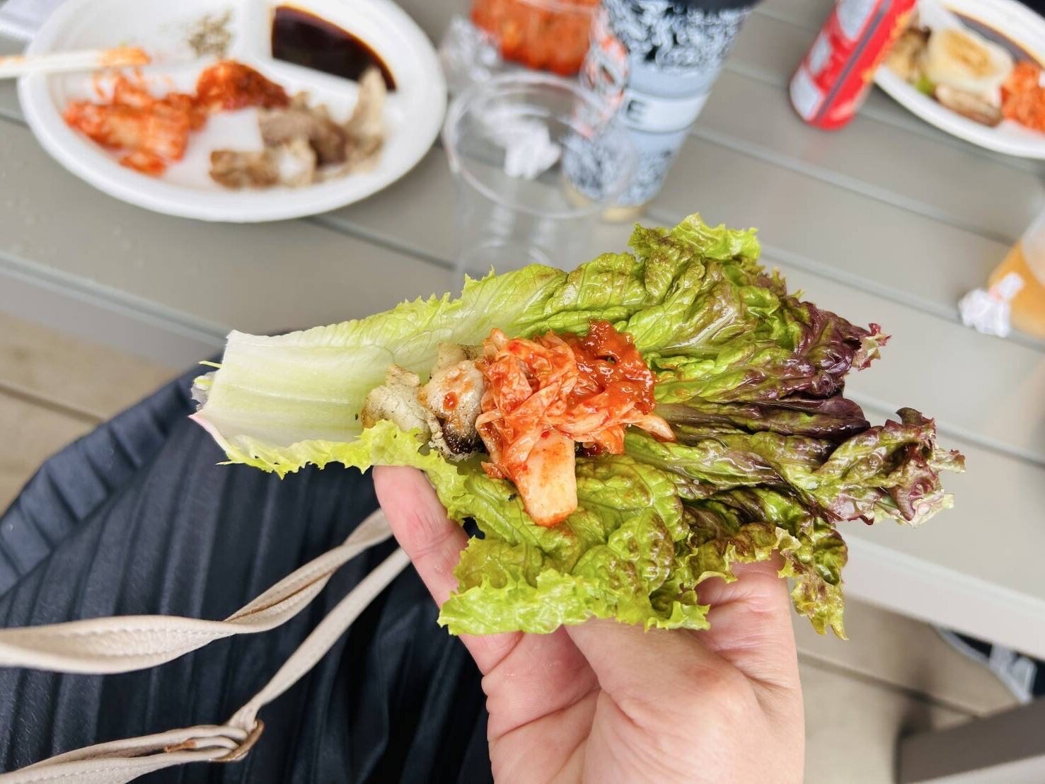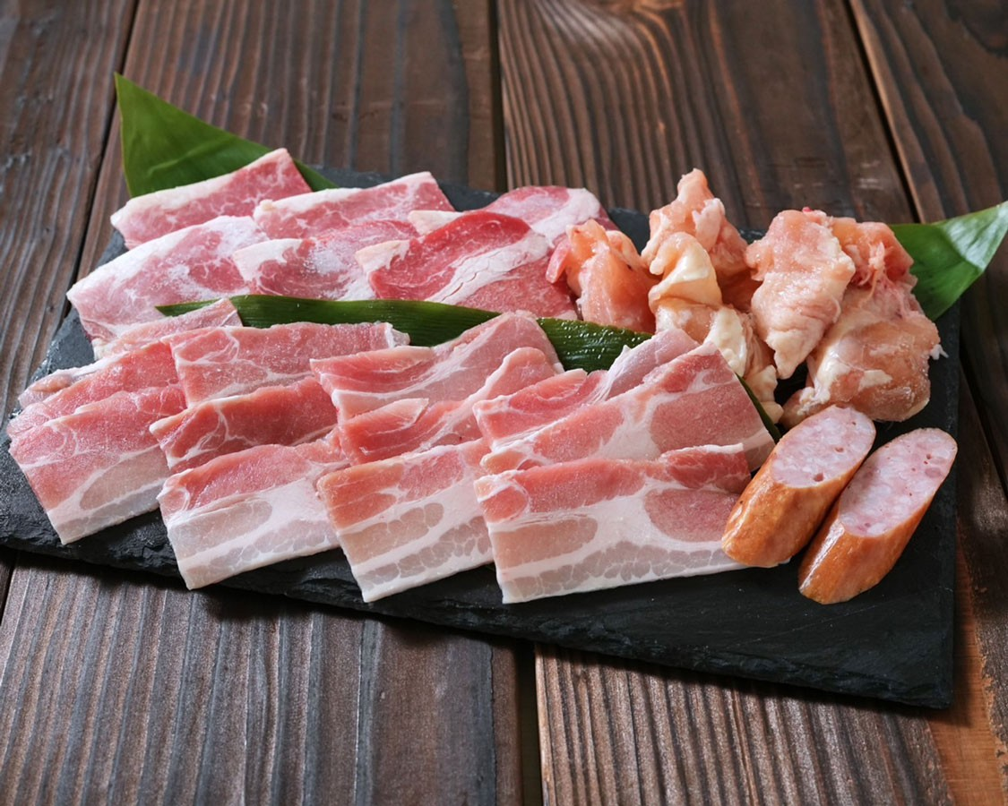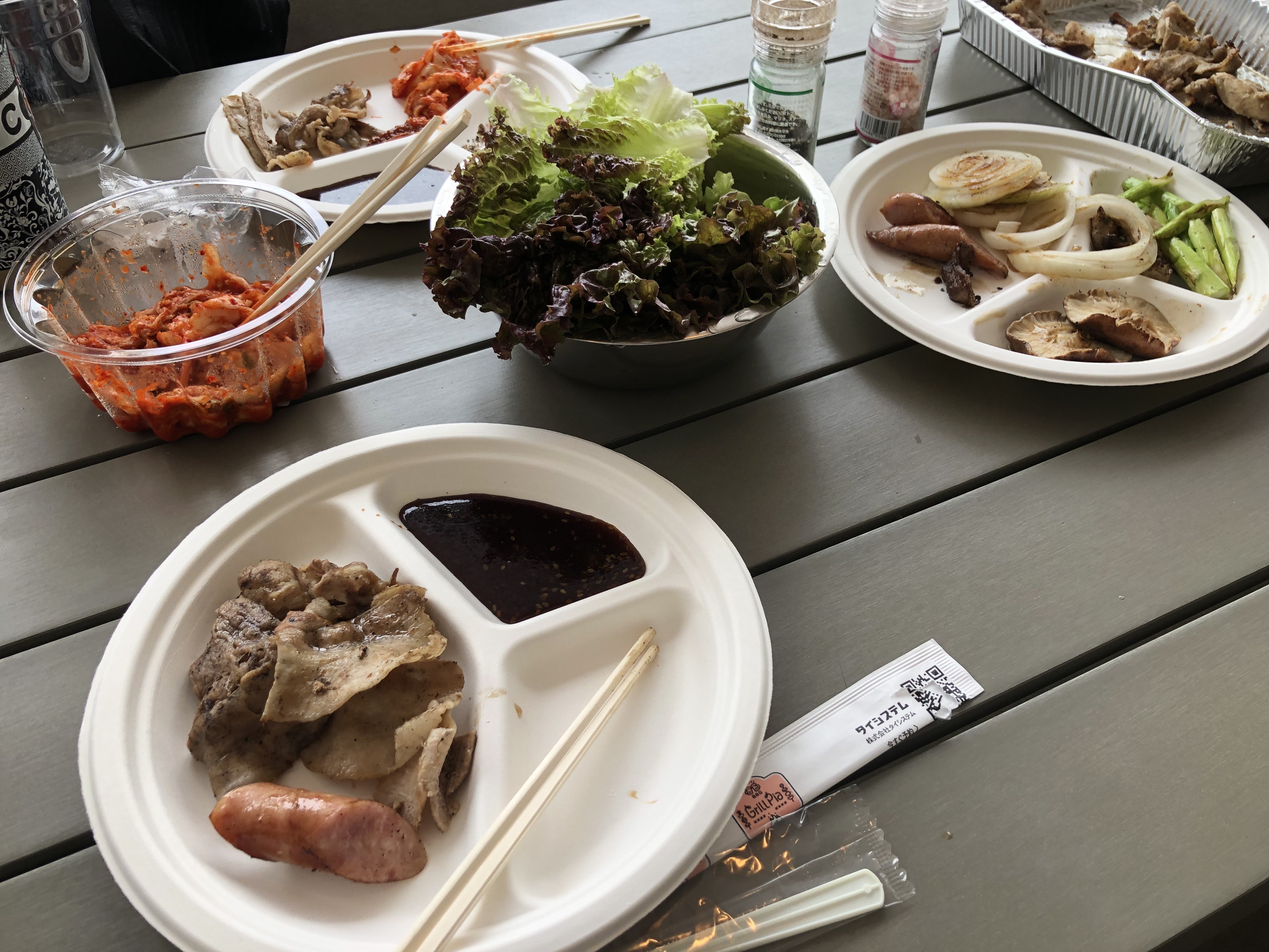 予約の食材以外にも持ち込みOKとなっているので、今回予約した満腹セットにプラスして4階のロピアで野菜や海鮮、焼きおにぎり、お肉などを追加購入しましたよ。