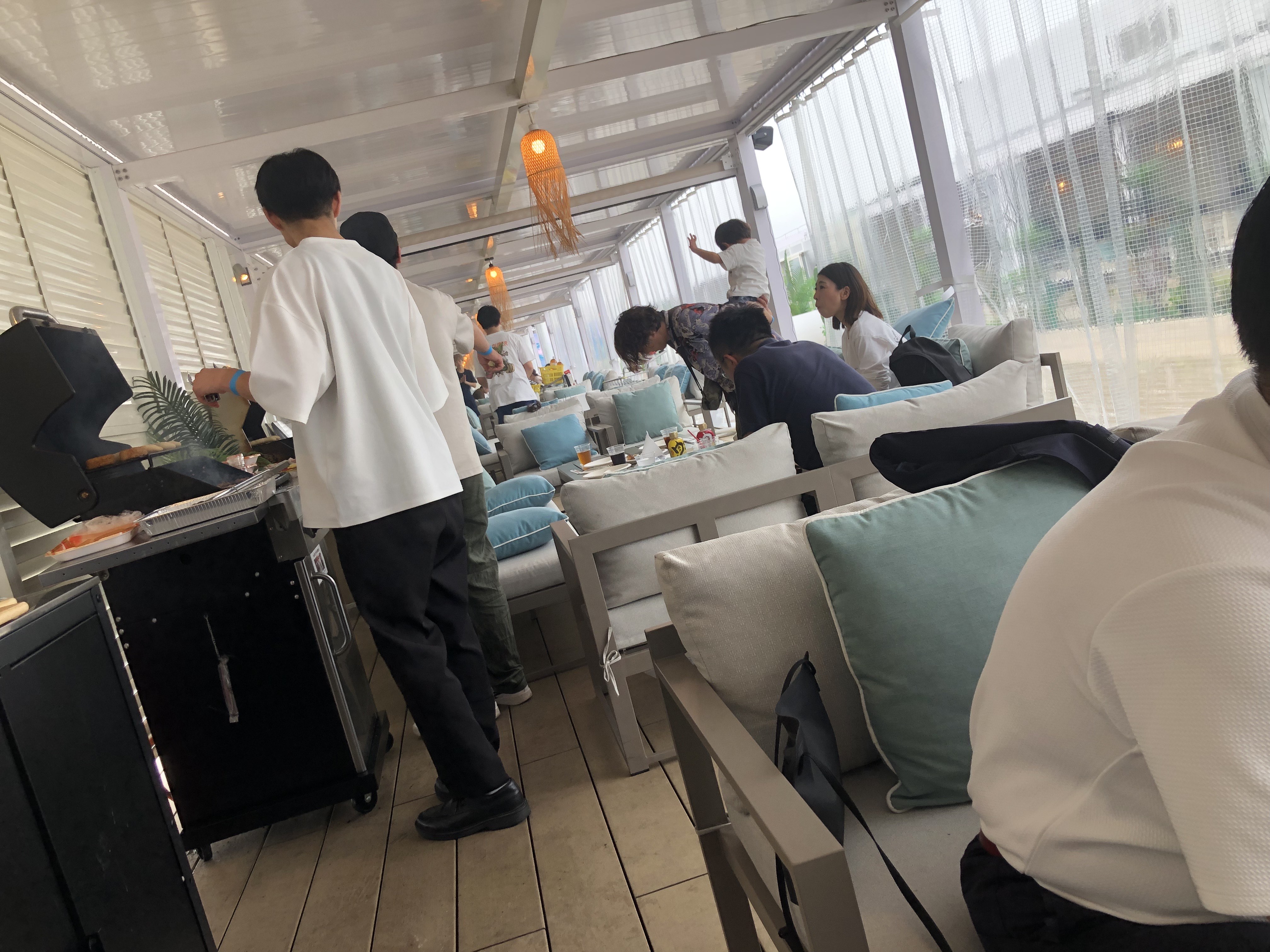 ただし、ドリンク飲み放題のドリンクを取りに行くには屋根がないところを通るので傘は必要です。