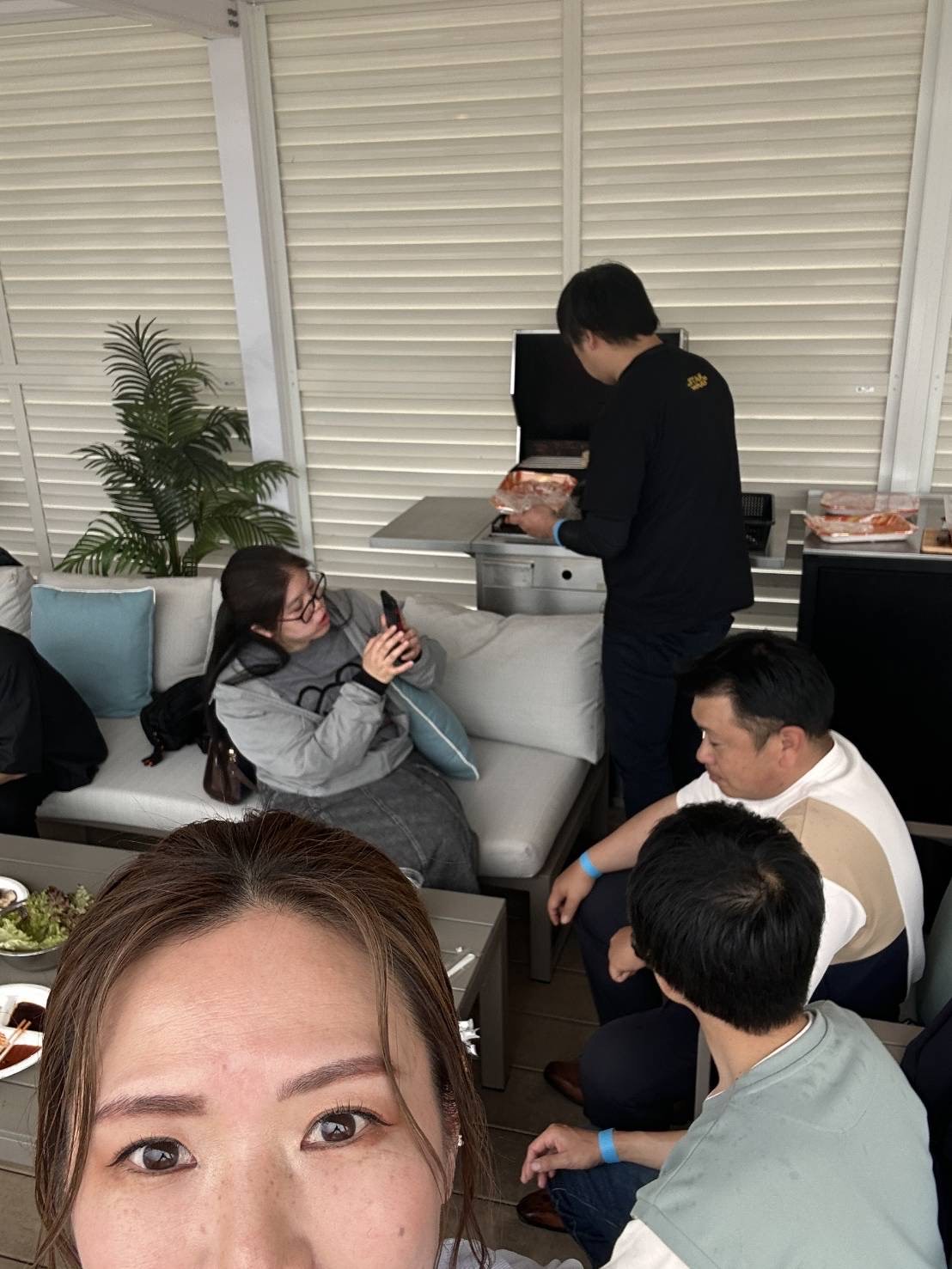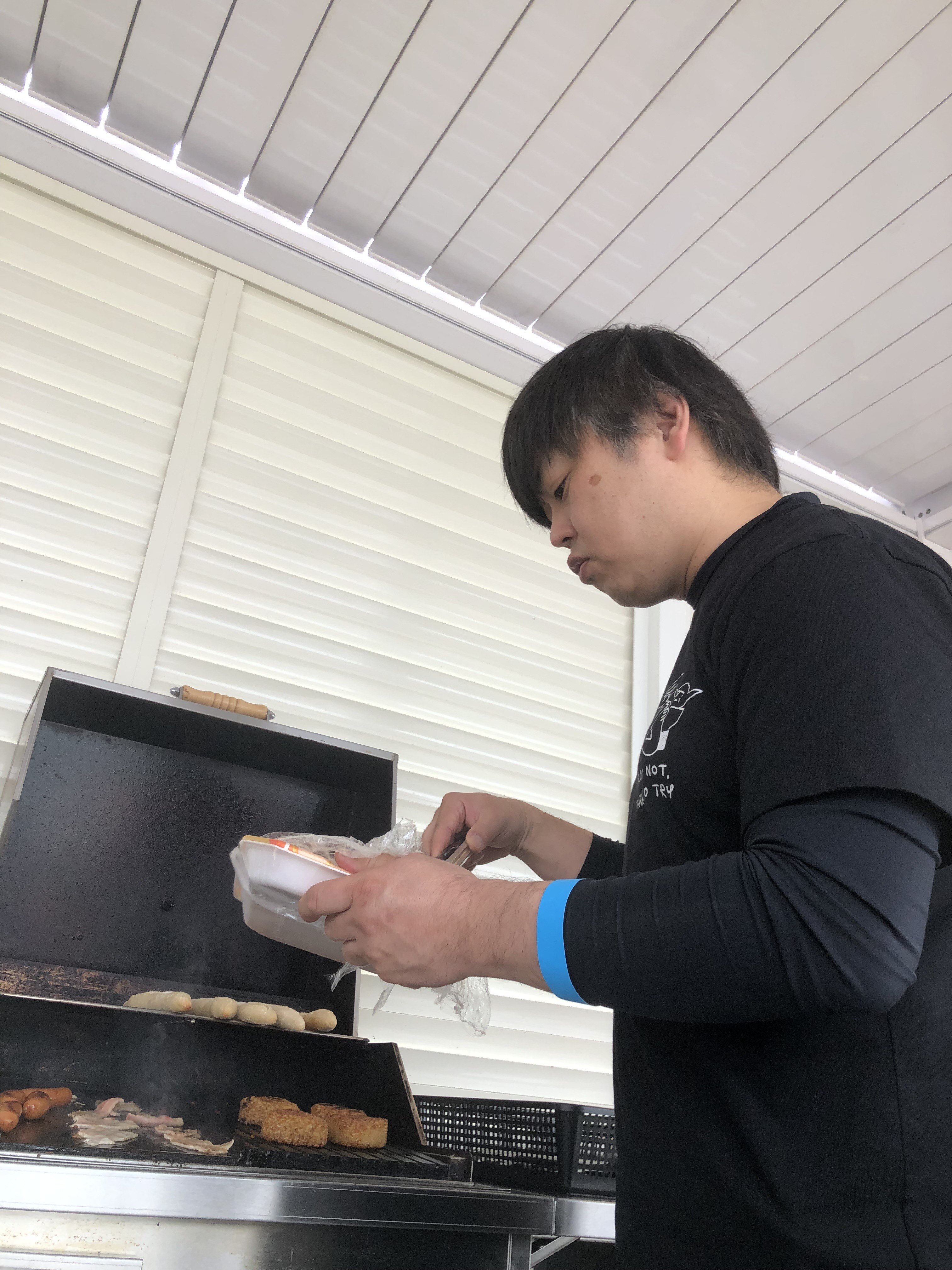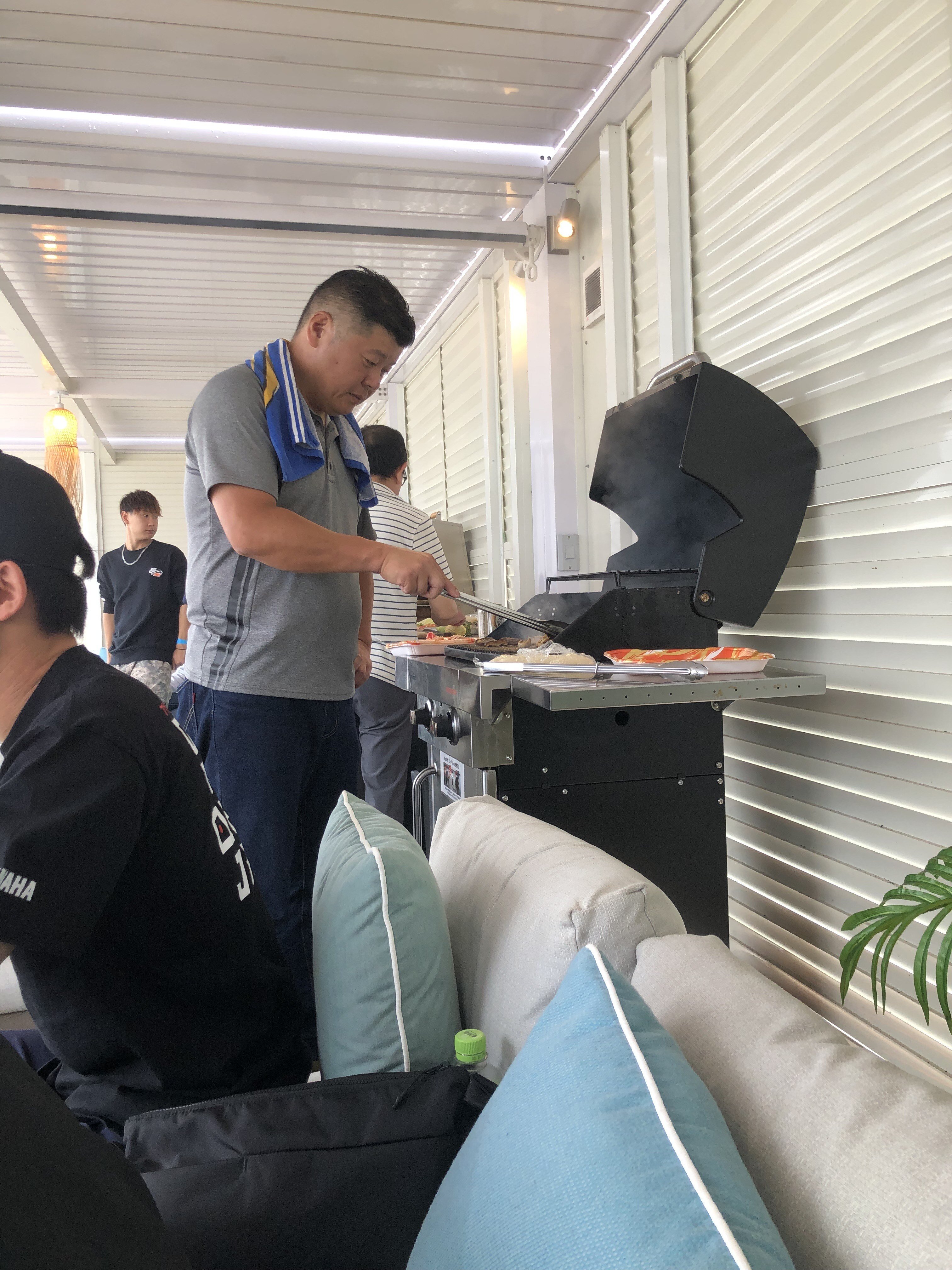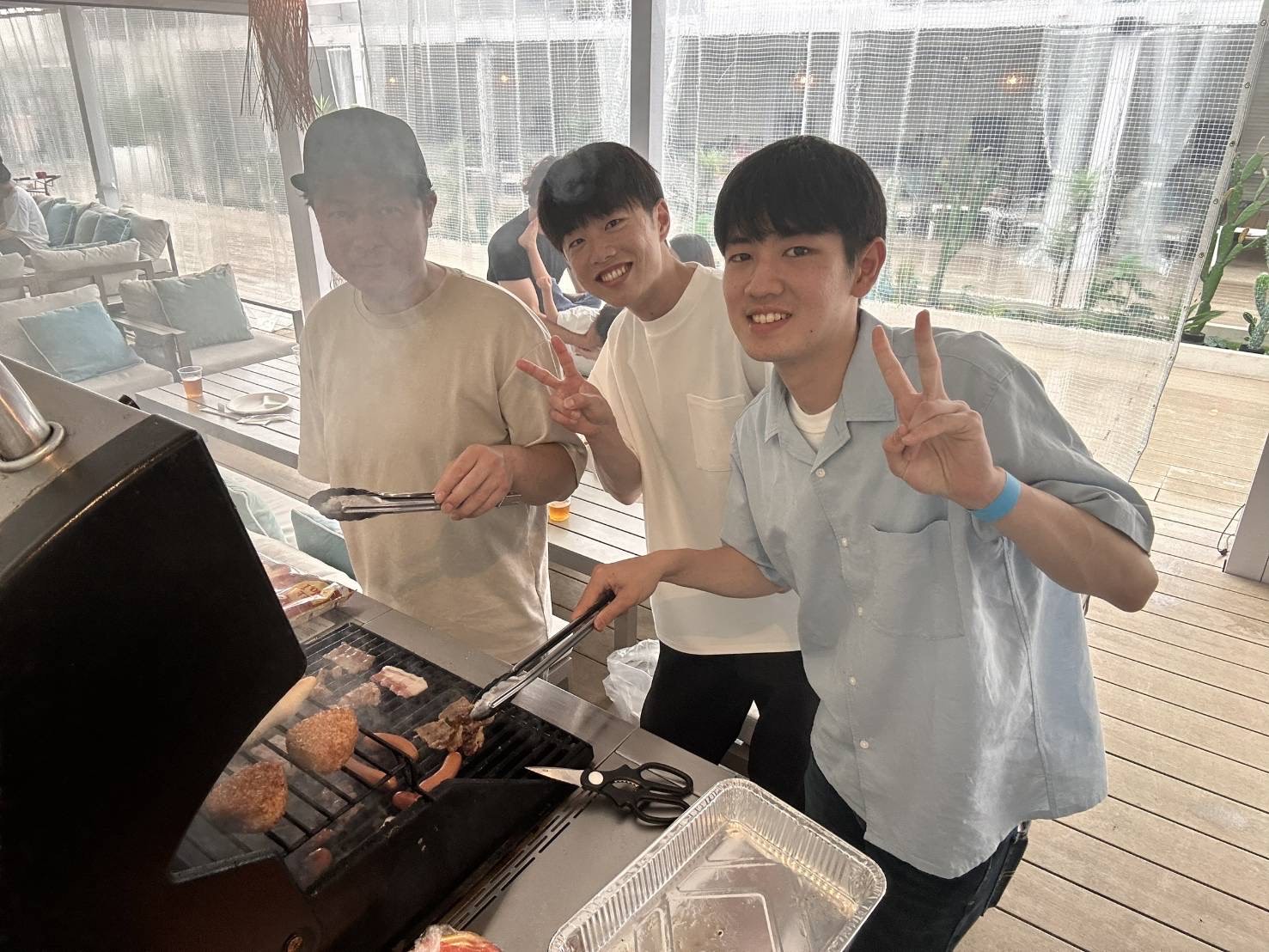 飲み物を取りに行って、新人さんの自己紹介、乾杯をしたらBBQスタート!