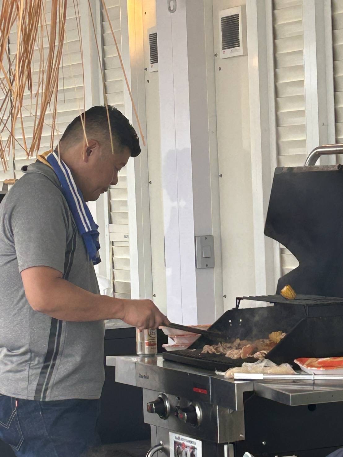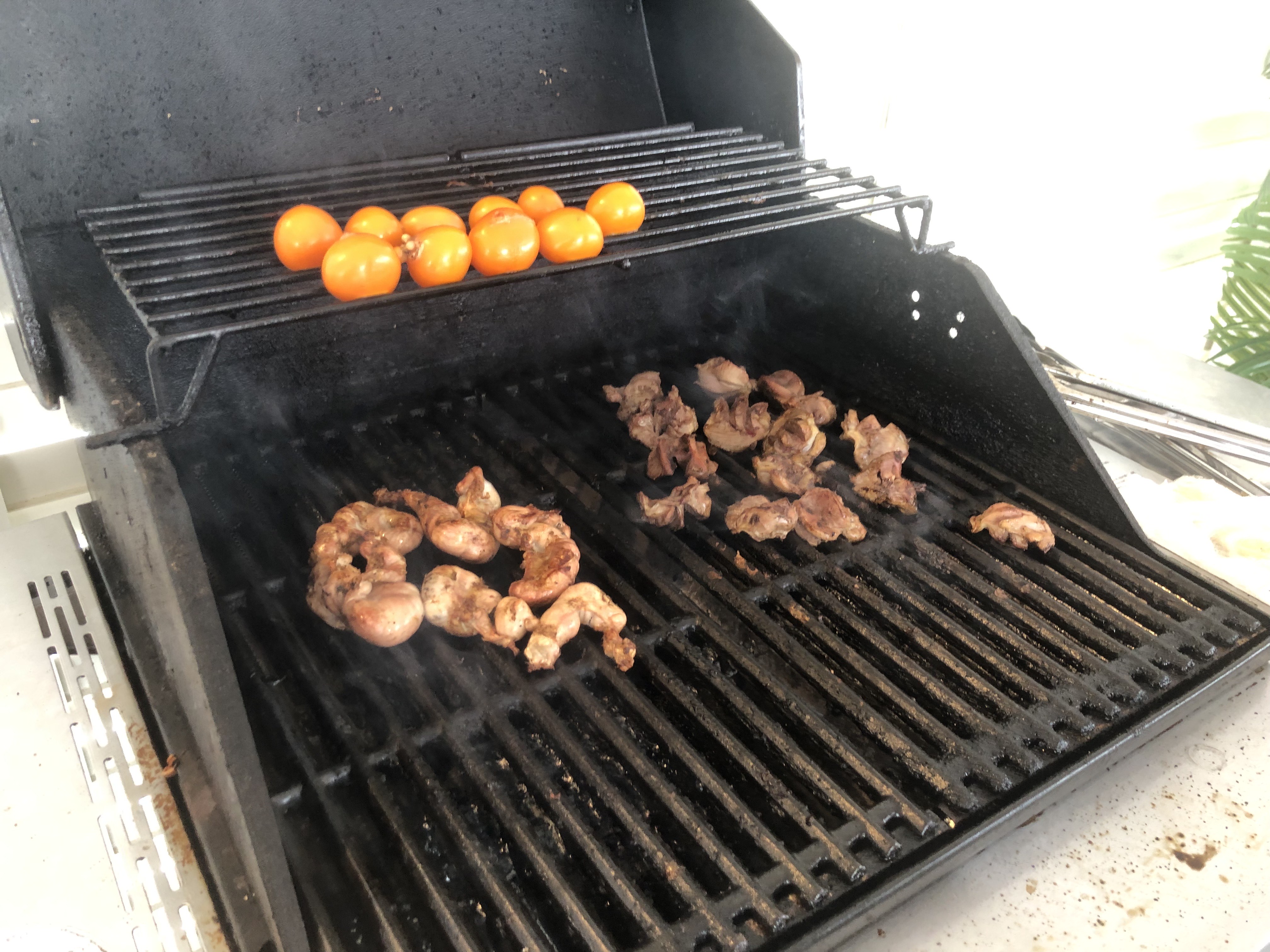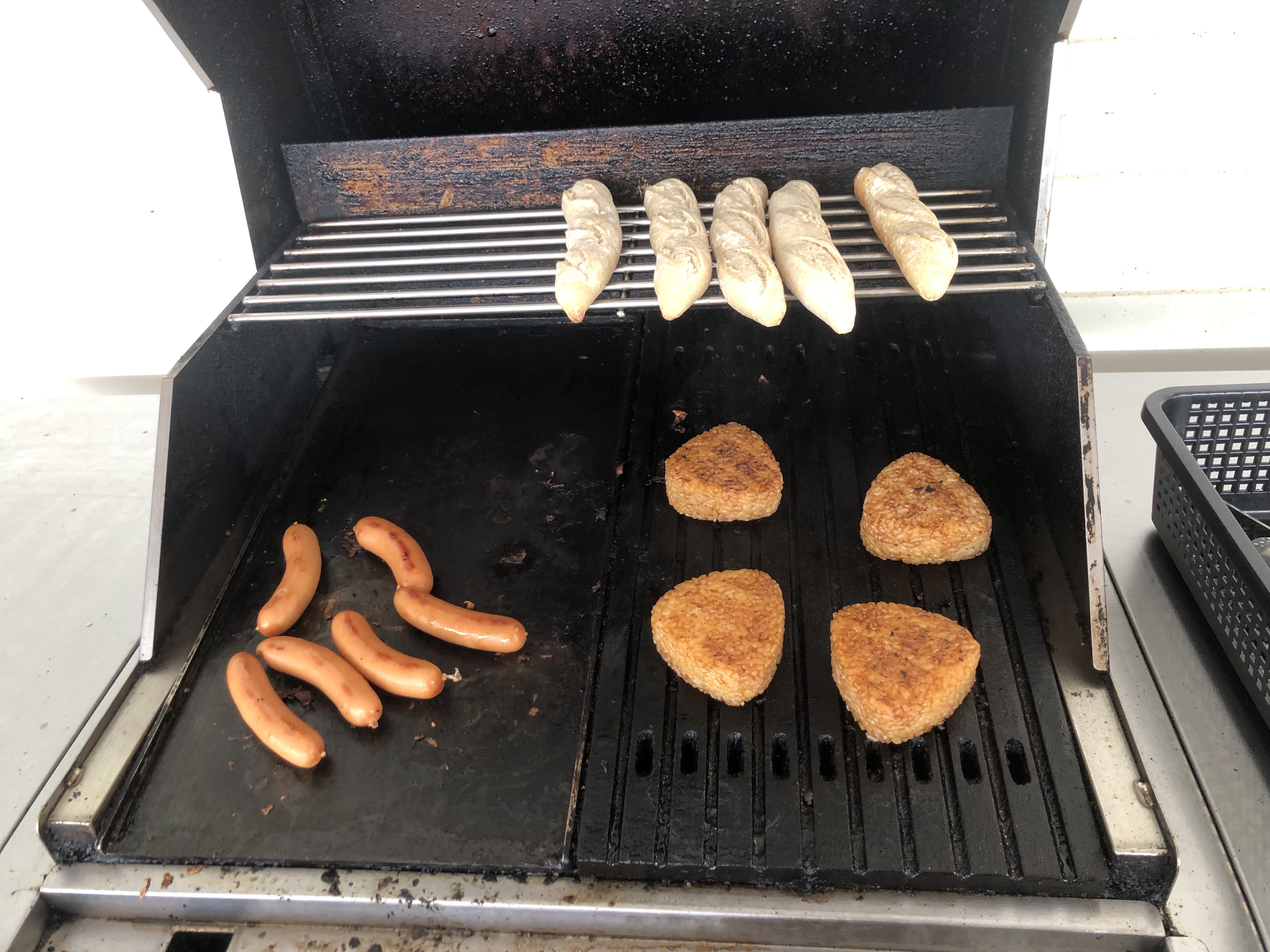 最初の方のたくさんお肉を焼いてるところは写真撮るの忘れたのである程度落ち着いて各々食べたいものを少しずつ焼いてる写真しかないですが、こんな感じのグリルでした。