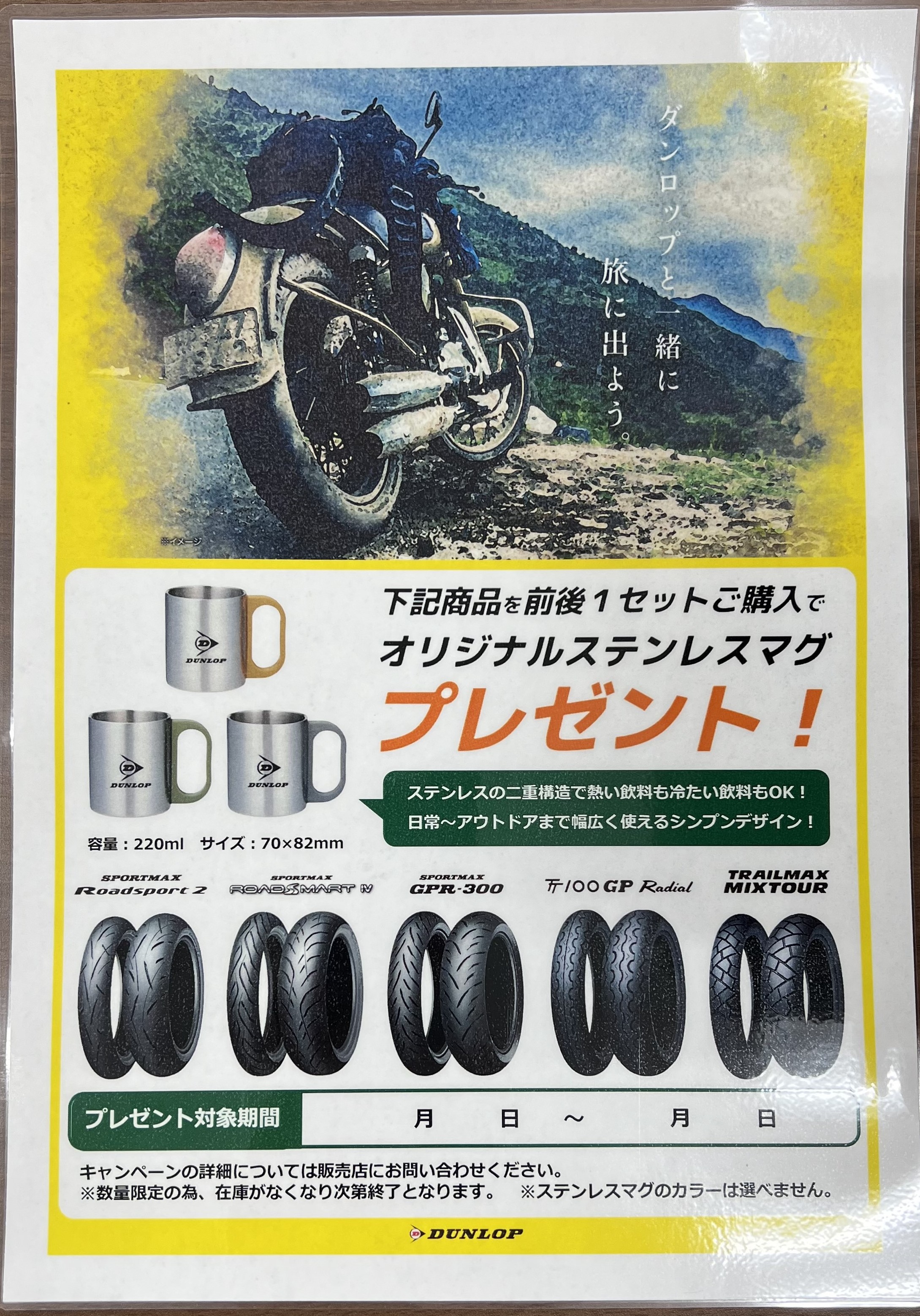 ダンロップのタイヤをご購入してくださったお客様にオリジナルステンレスマグをプレゼントしております!
