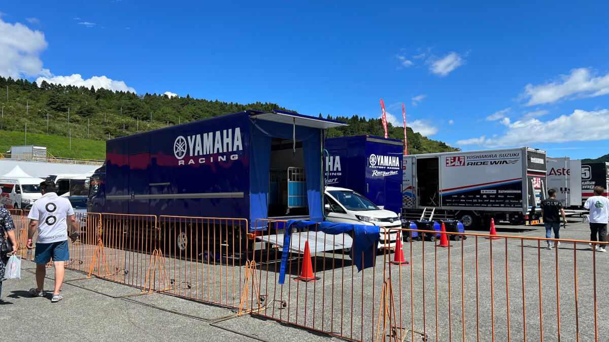 YAMAHAの青いトラックがあり、左側は選手の待機部屋になっているみたいです!!!
