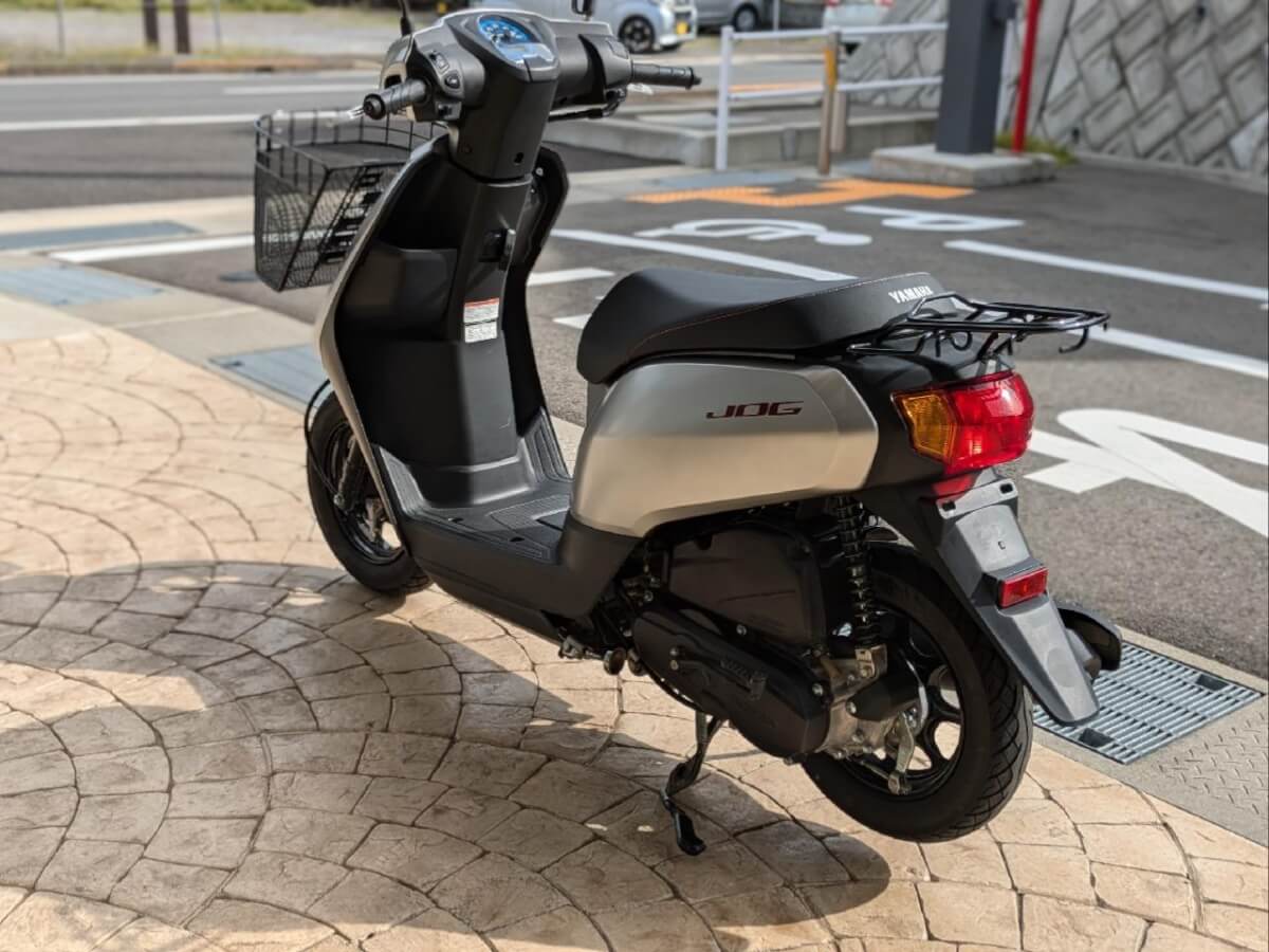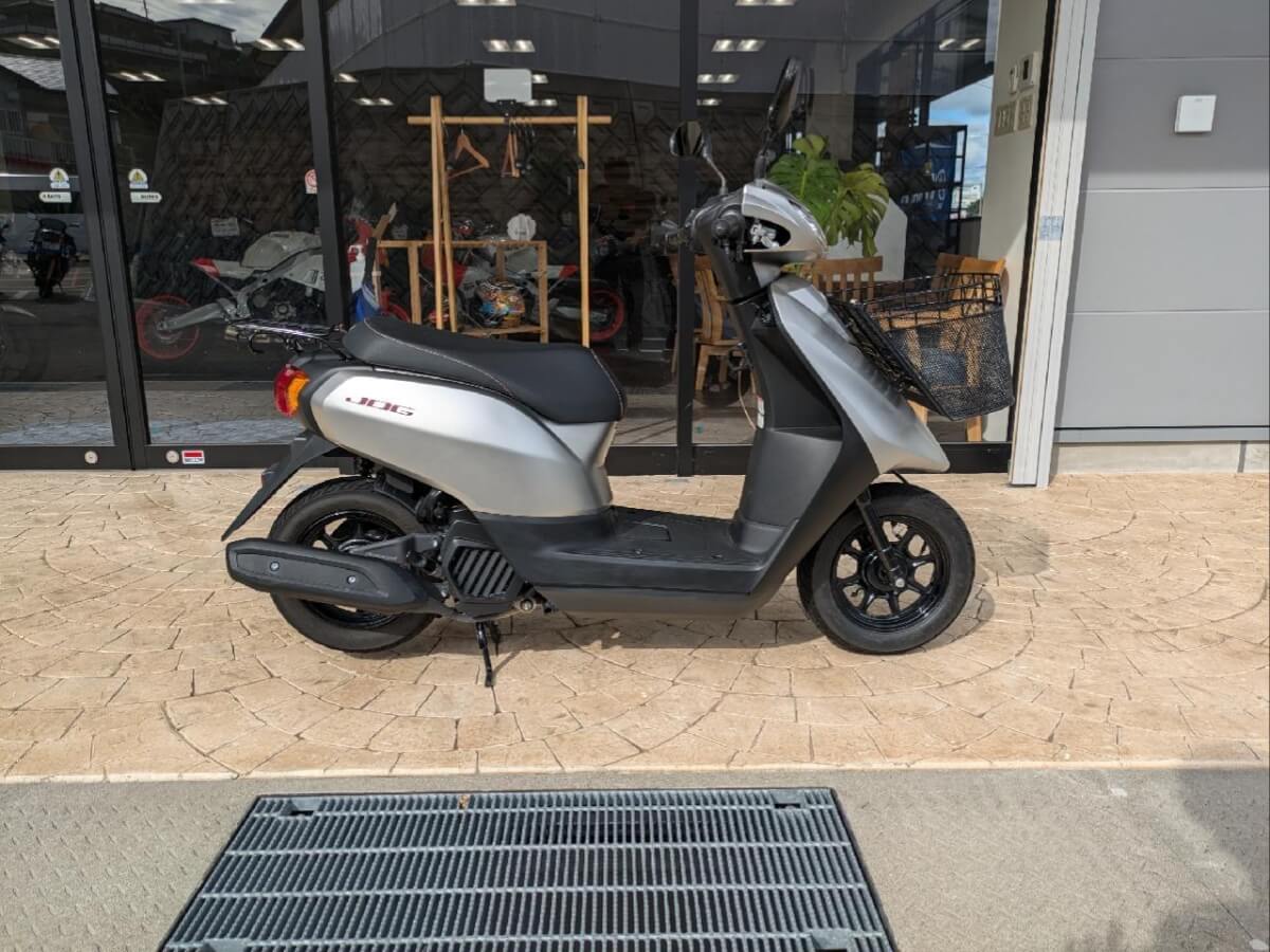 こちらの中古車には荷物の持ち運びに便利な前かご、コンビニなどでちょっとだけ停車したいときに使えるサイドスタンドが装備されていてJOGの便利さがさらにレベルアップしていますよ!!
