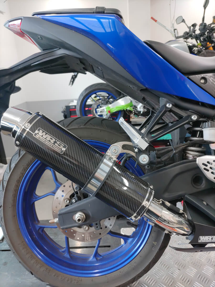 そしてお客様がチョイスしたマフラーはこちらの「WRS SLIP ON ラウンドタイプ カーボン」です。