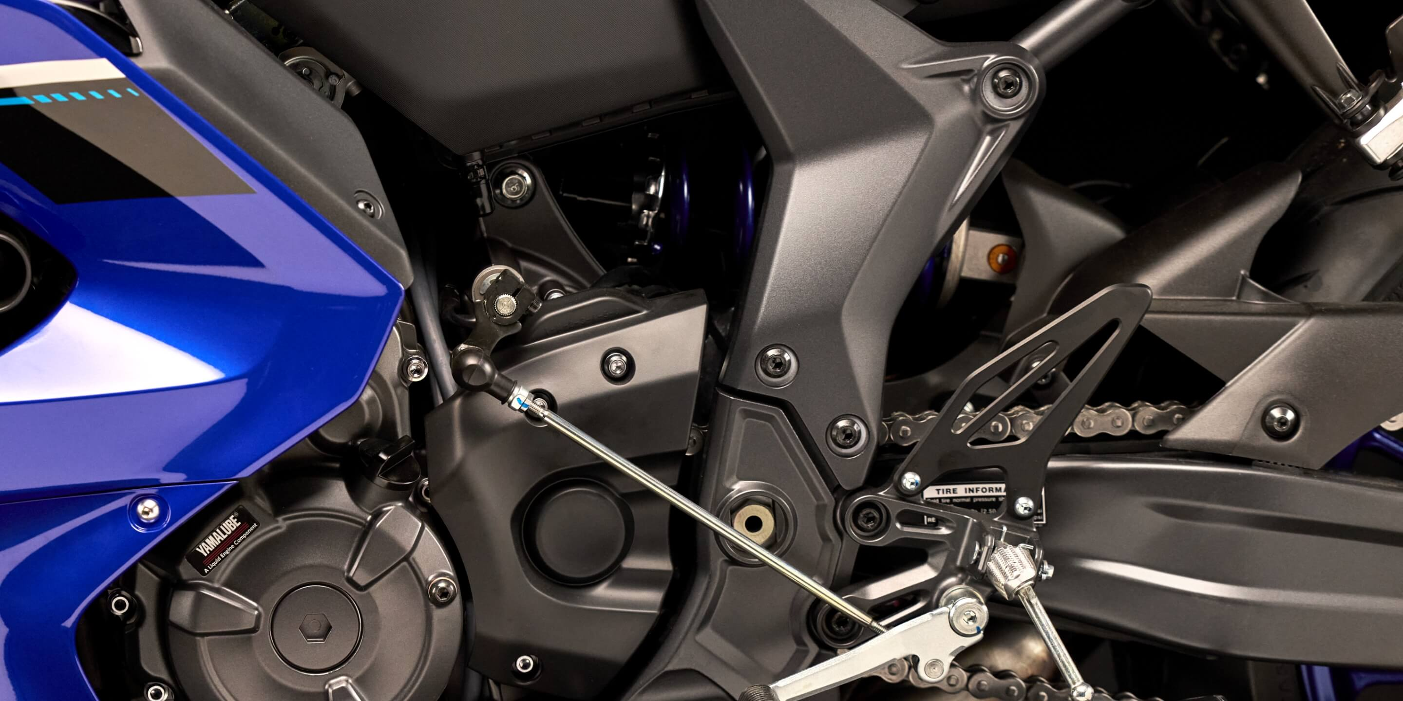 ライダーの意思にリニアに応え、軽量・スリム・コンパクトな車体のベースとなっているダイヤモンド型フレームは、基本骨格を2021年モデルMT-07から継承