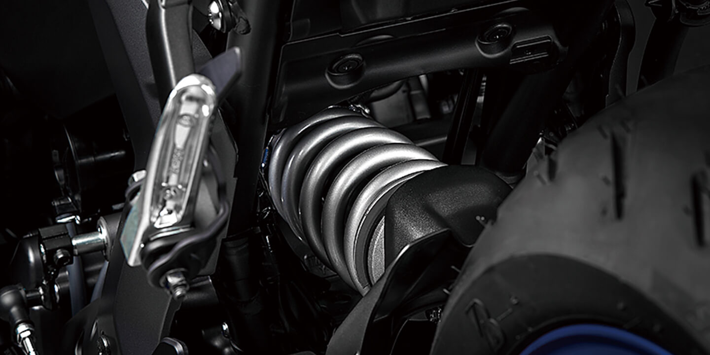 リンク式モノクロスリアサスペンションは、専用開発した減衰特性とばね定数により、ライディングフィールの軽快感とコーナリング時の良好な安定性を両立している。