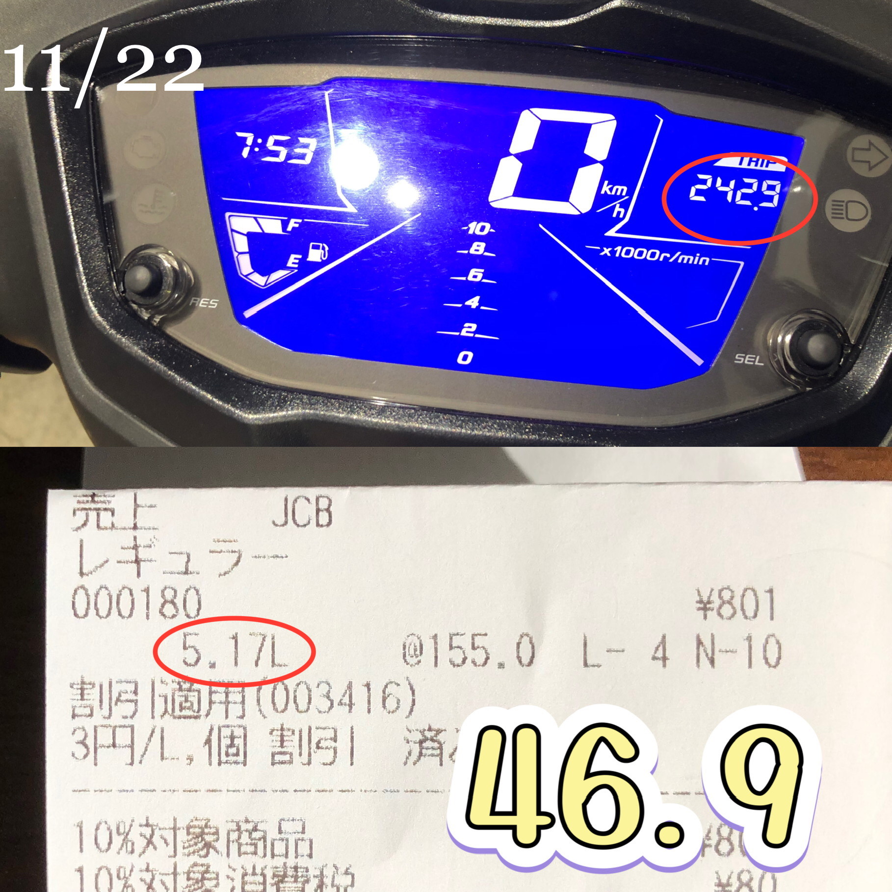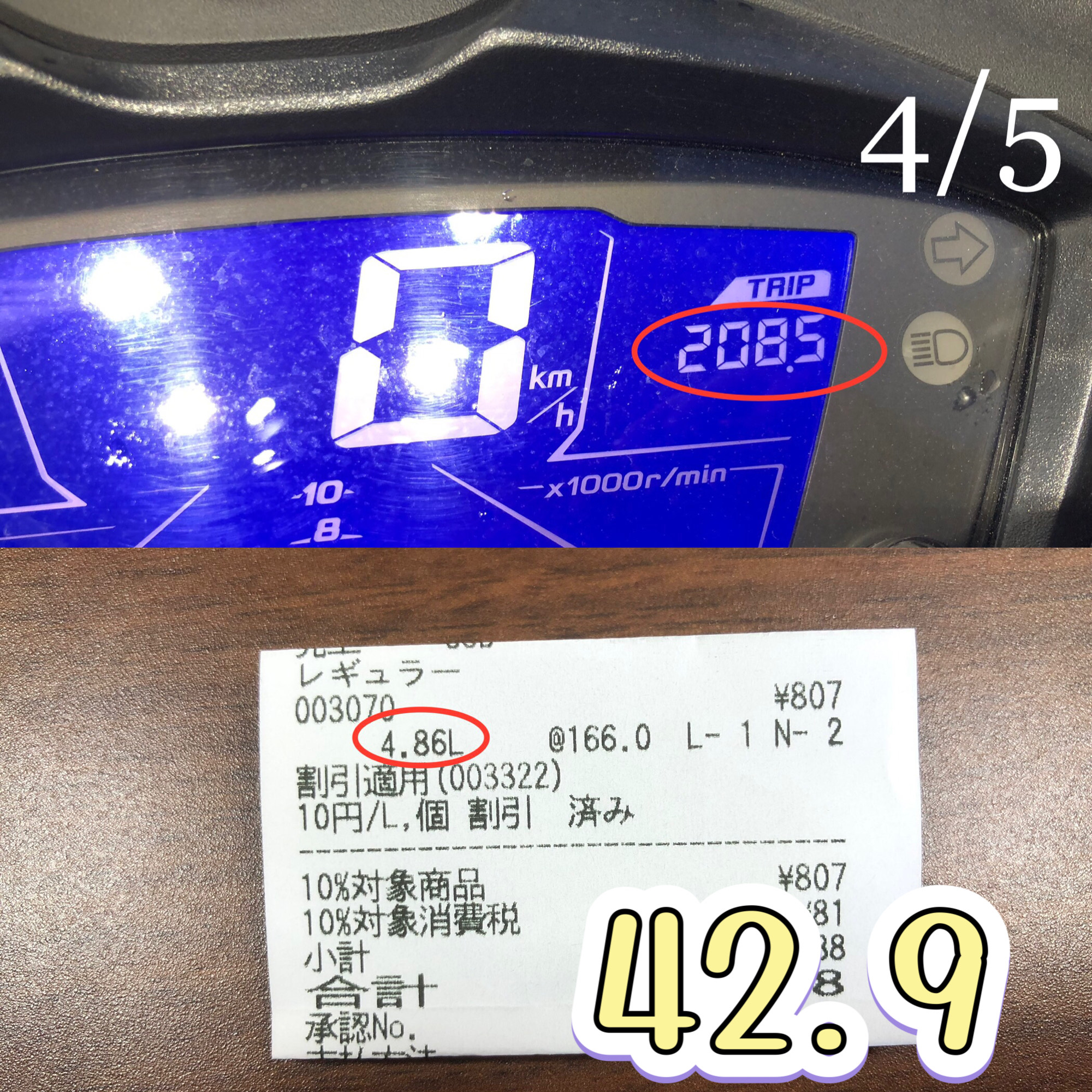私は短距離でちょこちょこ乗るのがメインなので、燃費はだいたいリッター40くらいでしたが、普段から距離乗る人はもっと燃費も伸びると思います。