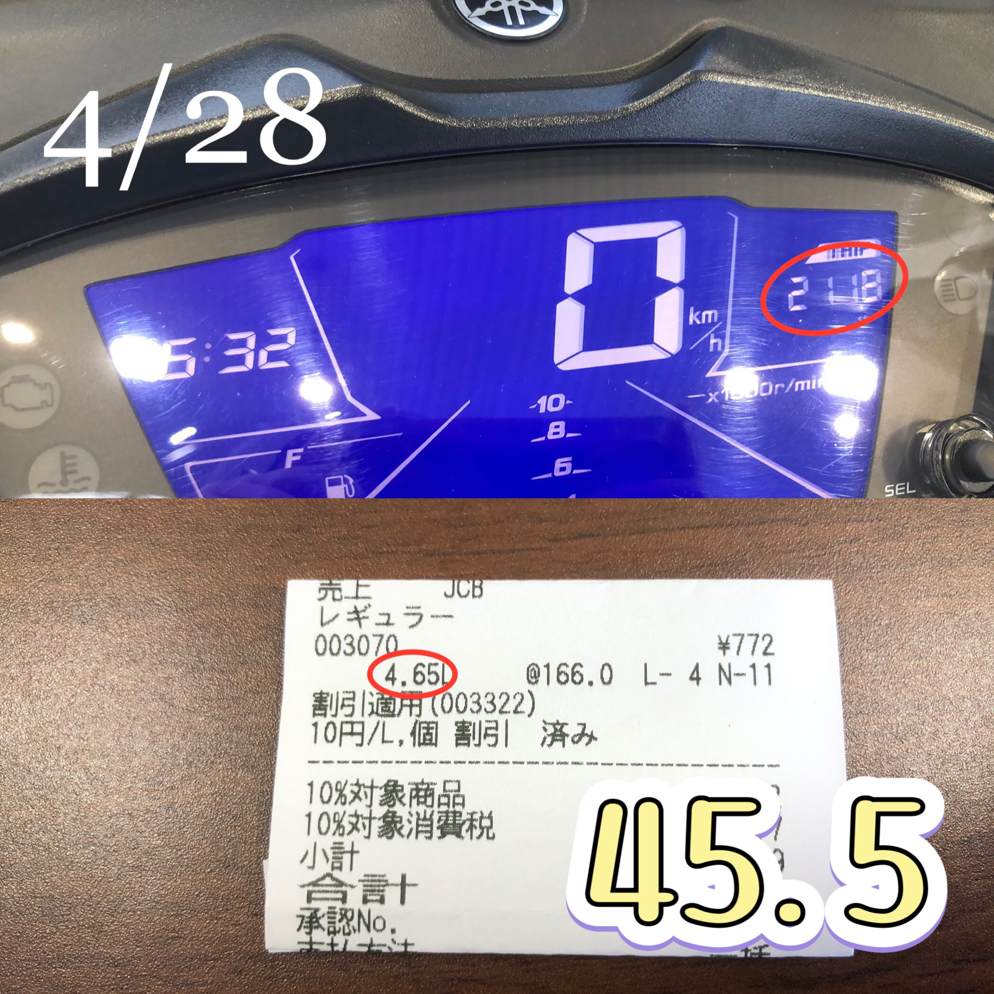 暖かくなりだしてからはコンスタントにリッター40越えしてますね(๑•̀ㅂ•́)و✧