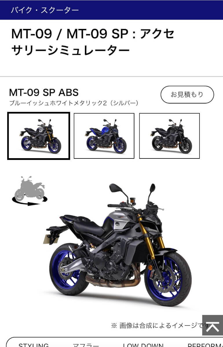 アクセサリーシミュレーターは現在、MT-09/SPのみの実装となっておりますが車両購入の際の検討材料の一つとして使ってみてはいかがでしょうか。