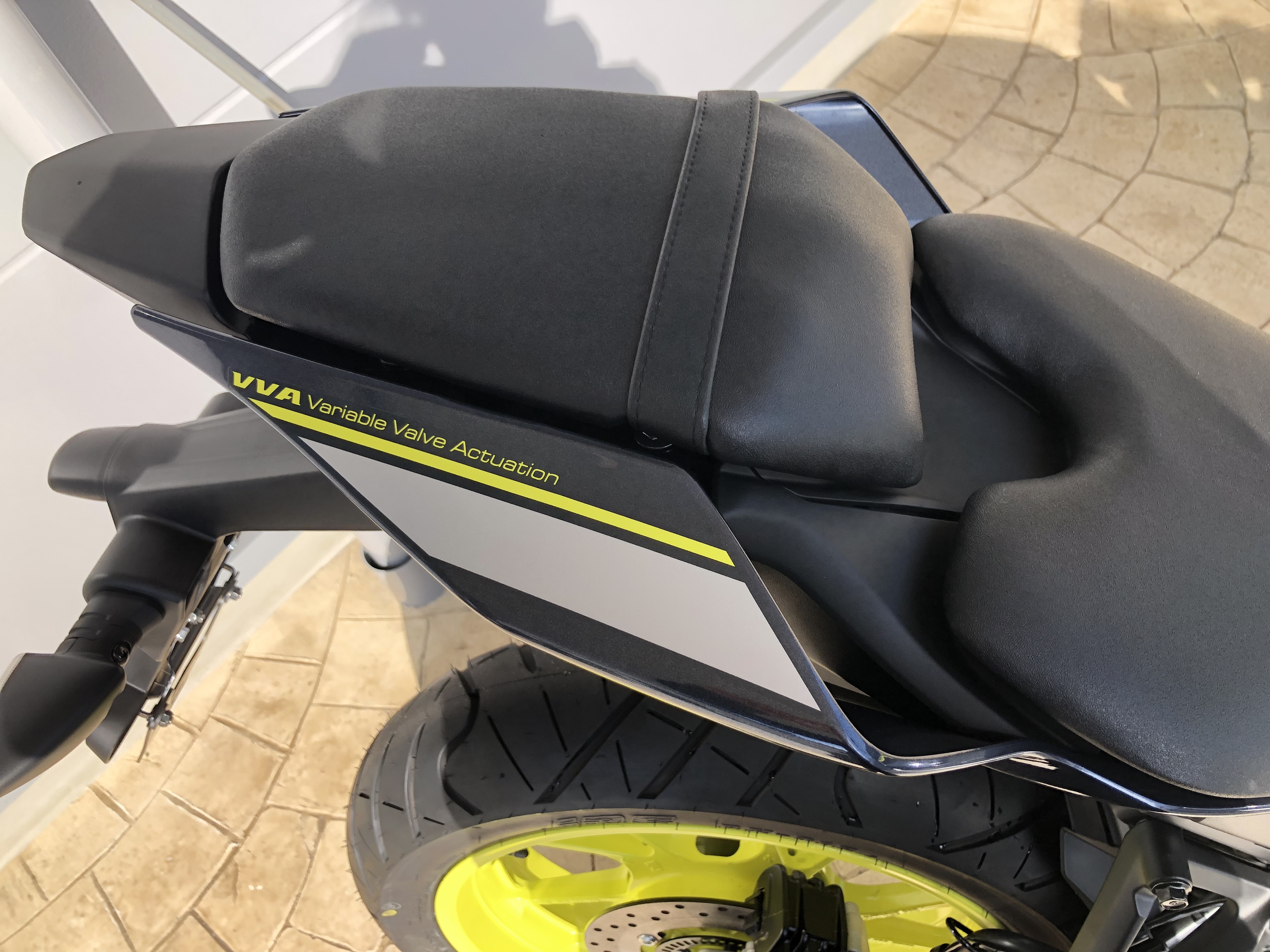 シート高だけ見ると815mmと高いですが、シートが細いので足がスッとおりて思っていたより足つきがいいんです。