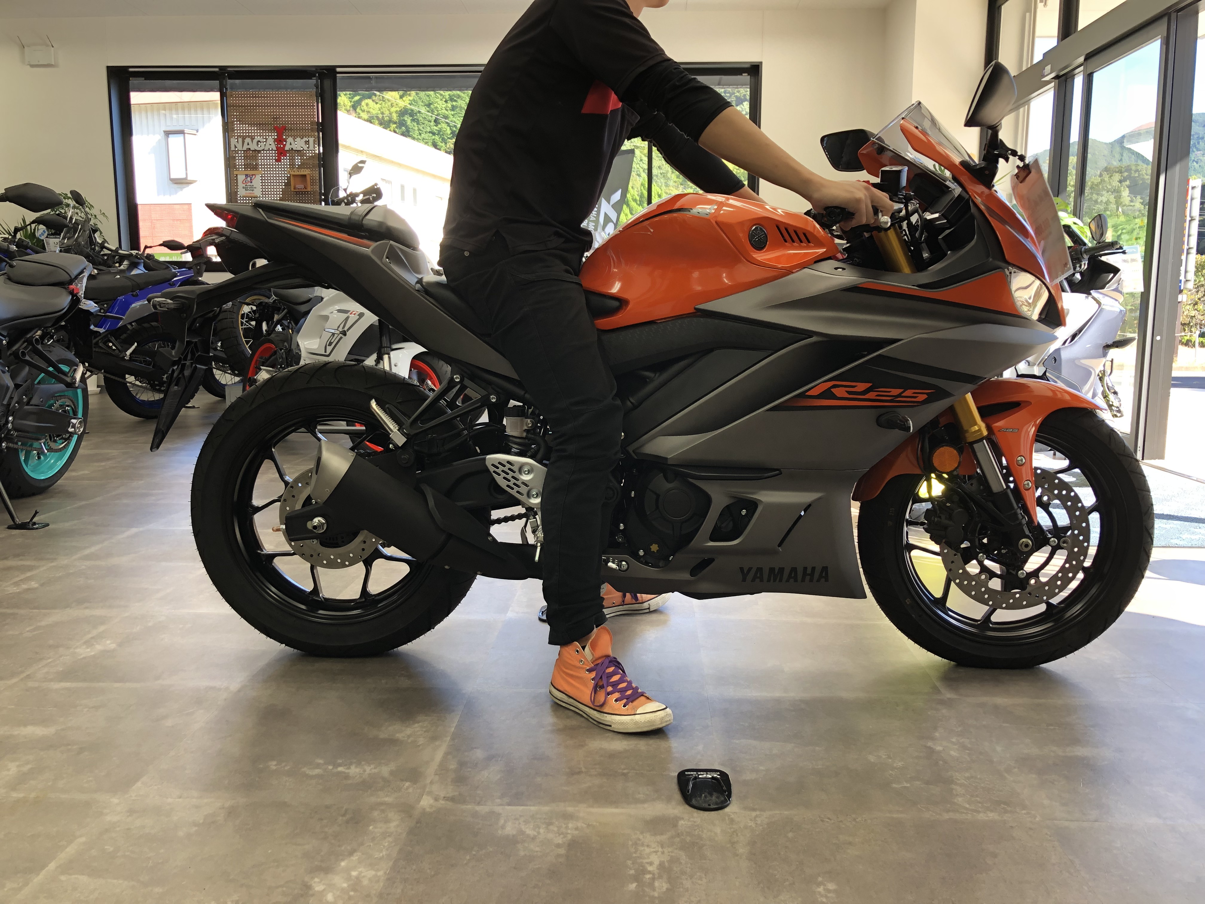35mmの差があるので若干YZF-R25の方が足つきはいいですが、個人的な感覚ではあまり変わらないように感じました。
